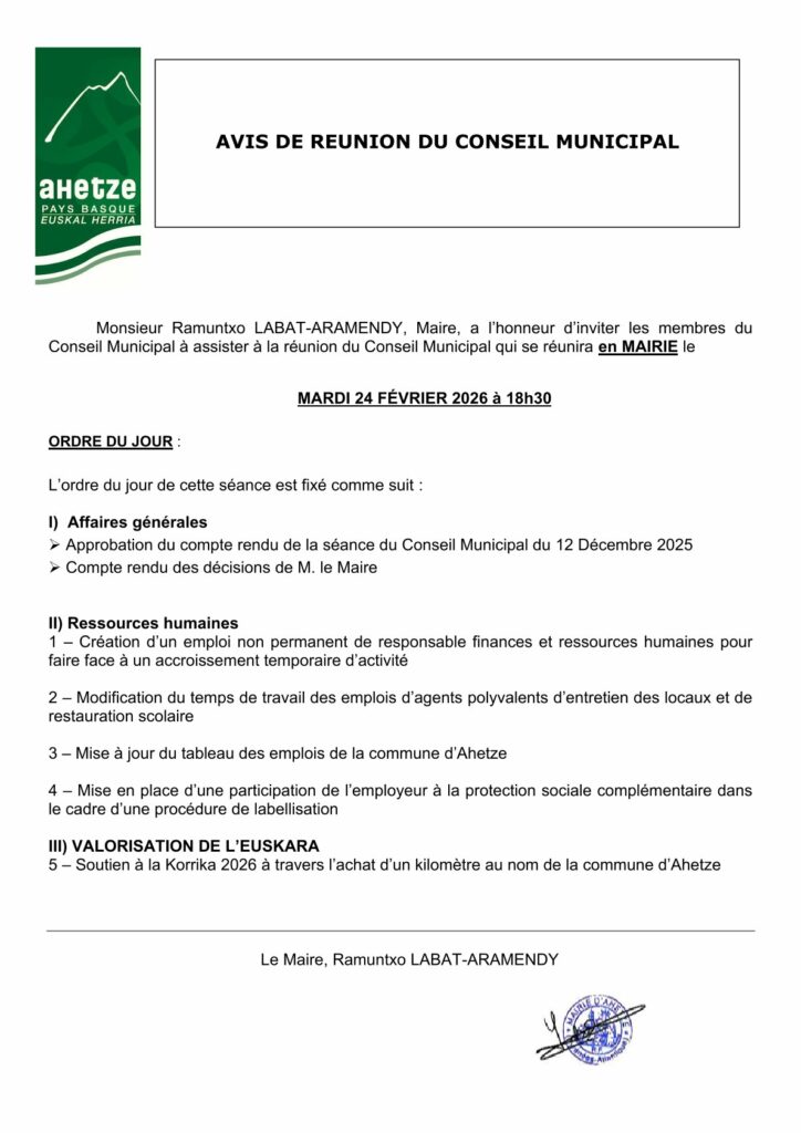 le prochain conseil municipal se déroulera le mardi 24 février à partir de 18h30 à la mairie, ouvert à toutes et tous.
