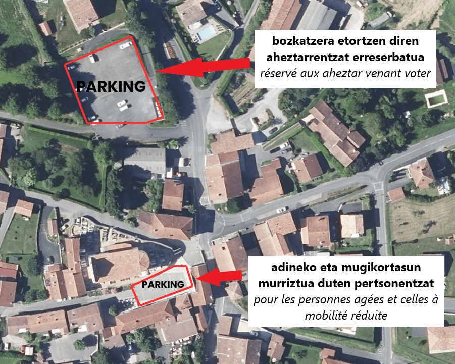 – pour se garer le parking de l’église sera priorisé pour les aheztar et la place Mattin TRECU sera réservée aux personnes âgées et/ou à mobilité réduite.