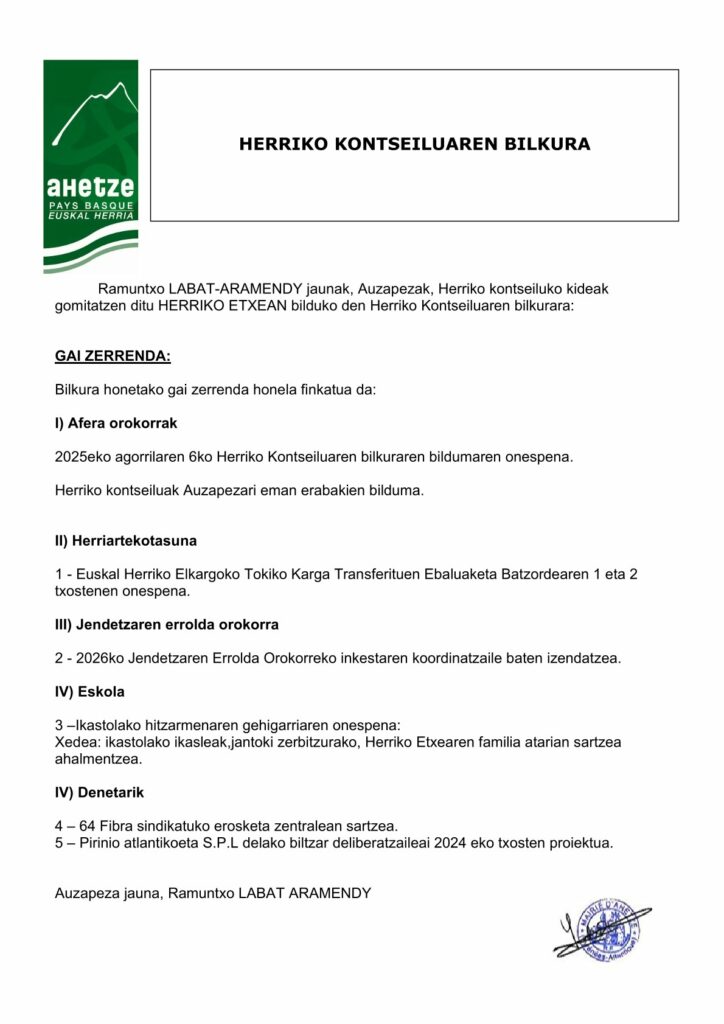 hurrengo herriko kontseilua urriaren 10ean ortziralarekin iraganen da arratsaldeko 6ak eta erdietatik goiti herriko etxean, deneri irekia.