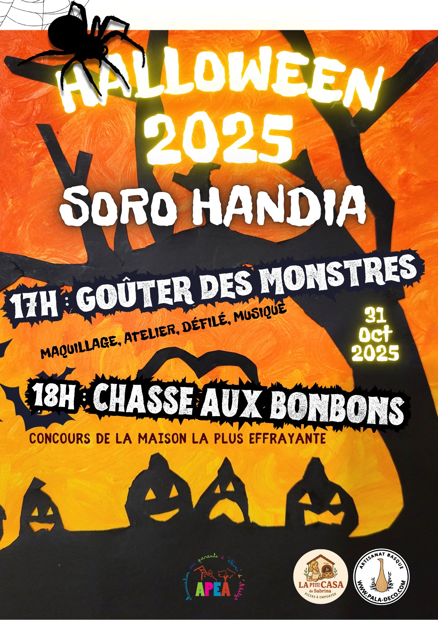 (EUS) ortziralean arratsaldeko 5etatik goiti SORO HANDIA auzoan HALLOWEEN gertakaria Association des Parents d’Elèves d’Ahetze – APEAk antolaturik