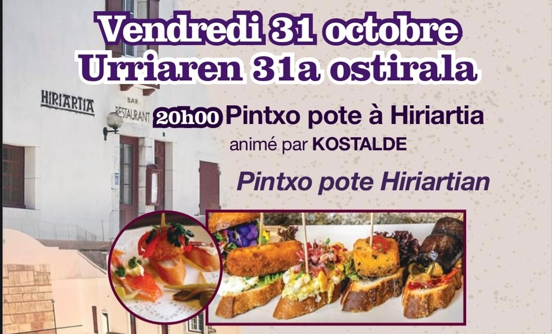 (FR) PINTXO POTE animé par le groupe Kostalde vendredi soir à partir de 20h à Hiriartia